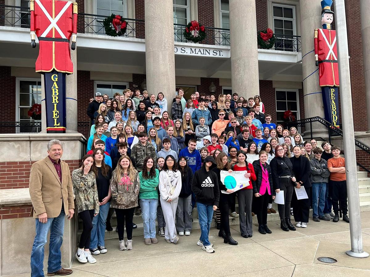 Muhlenberg County Judge/Executive Mack McGehee welcomed social studies students from Muhlenberg County Middle School to the courthouse for a tour and to watch a mock trial. | |