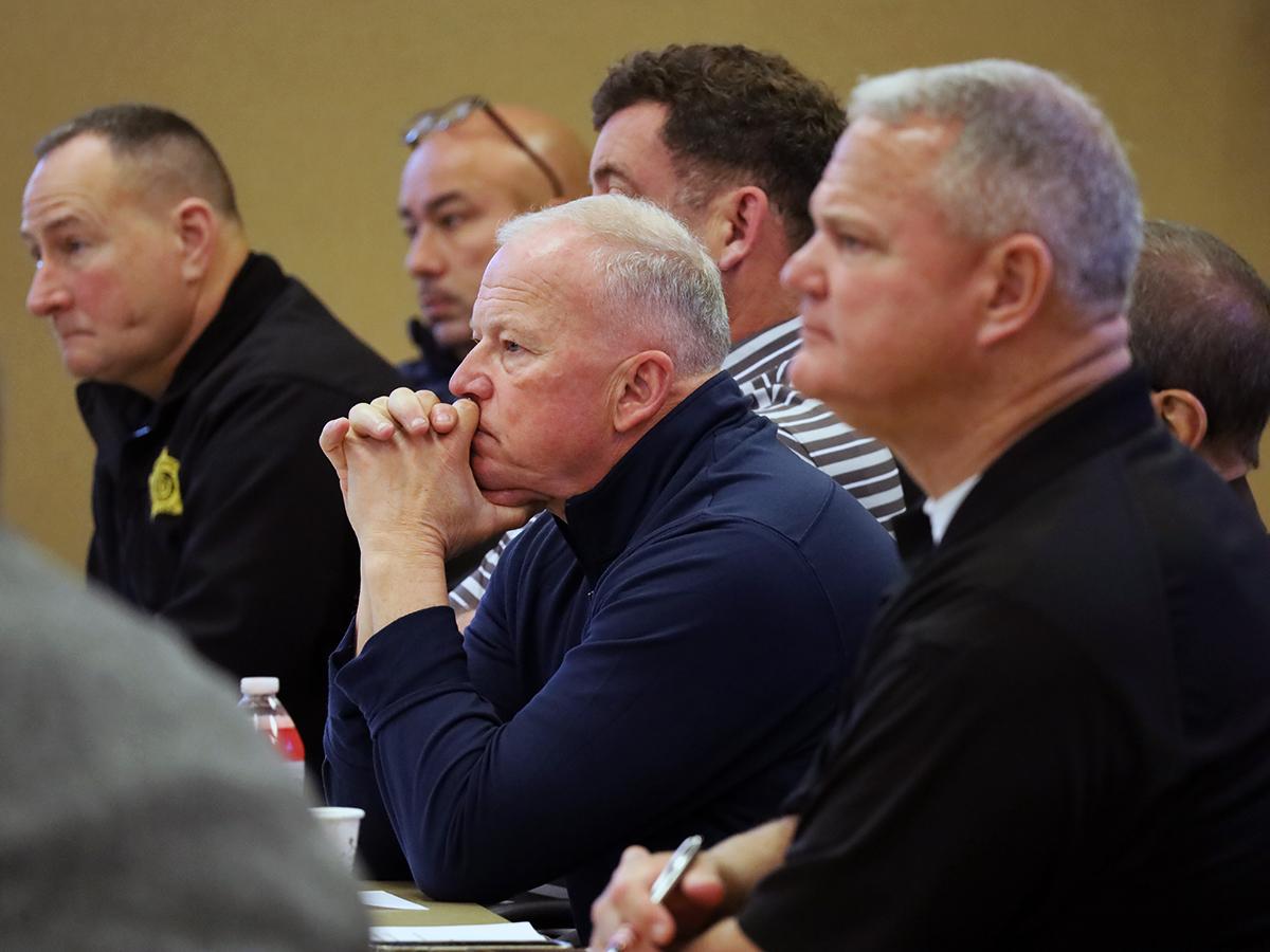 Sheriffs and other sheriff personnel llisten to the discussion at the sheriff association meeting held at KACo. | |