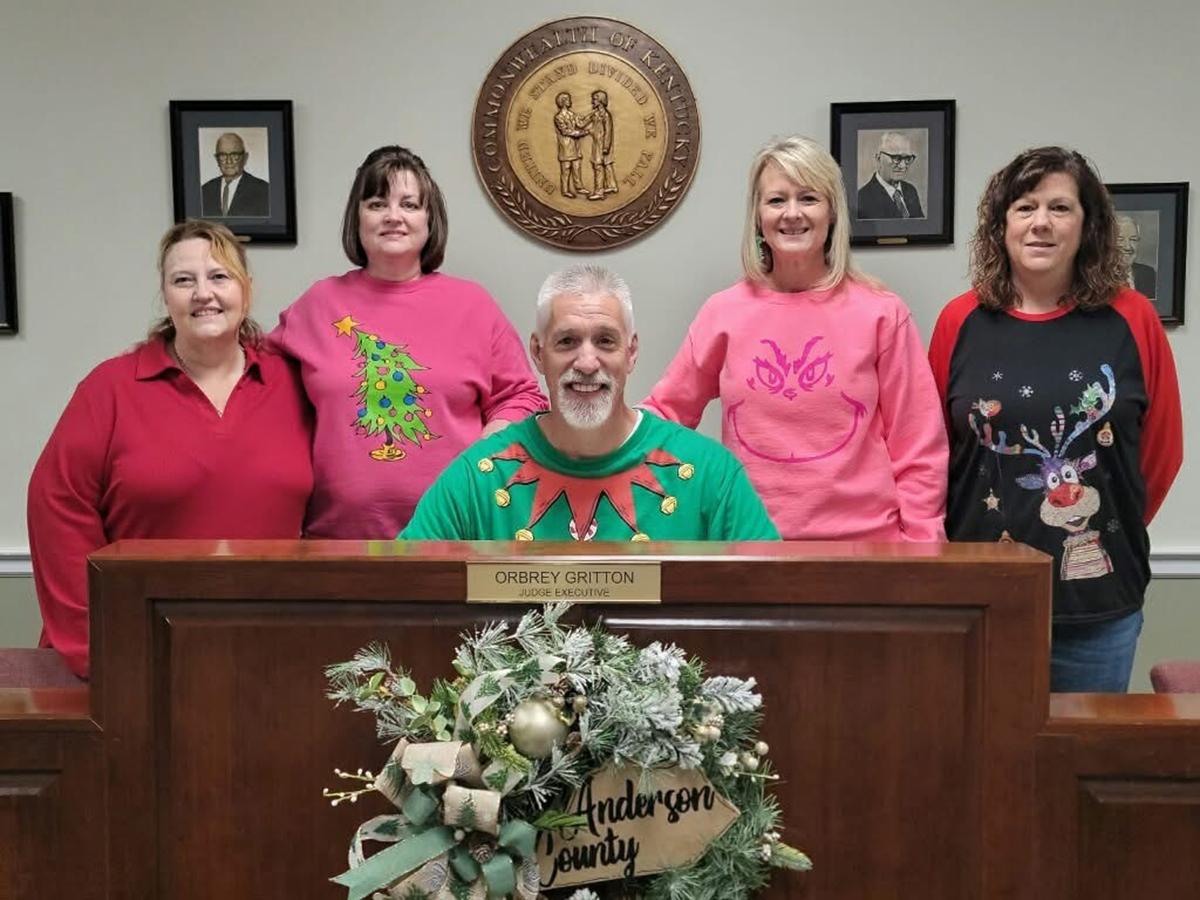 Anderson County Judge/Executive Orbrey Gritton and his staff members show off their holiday spirit this week. | |