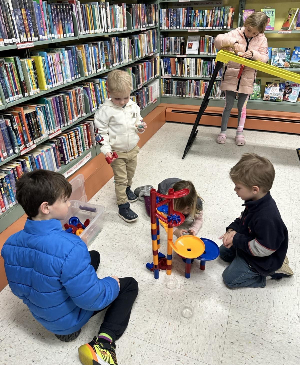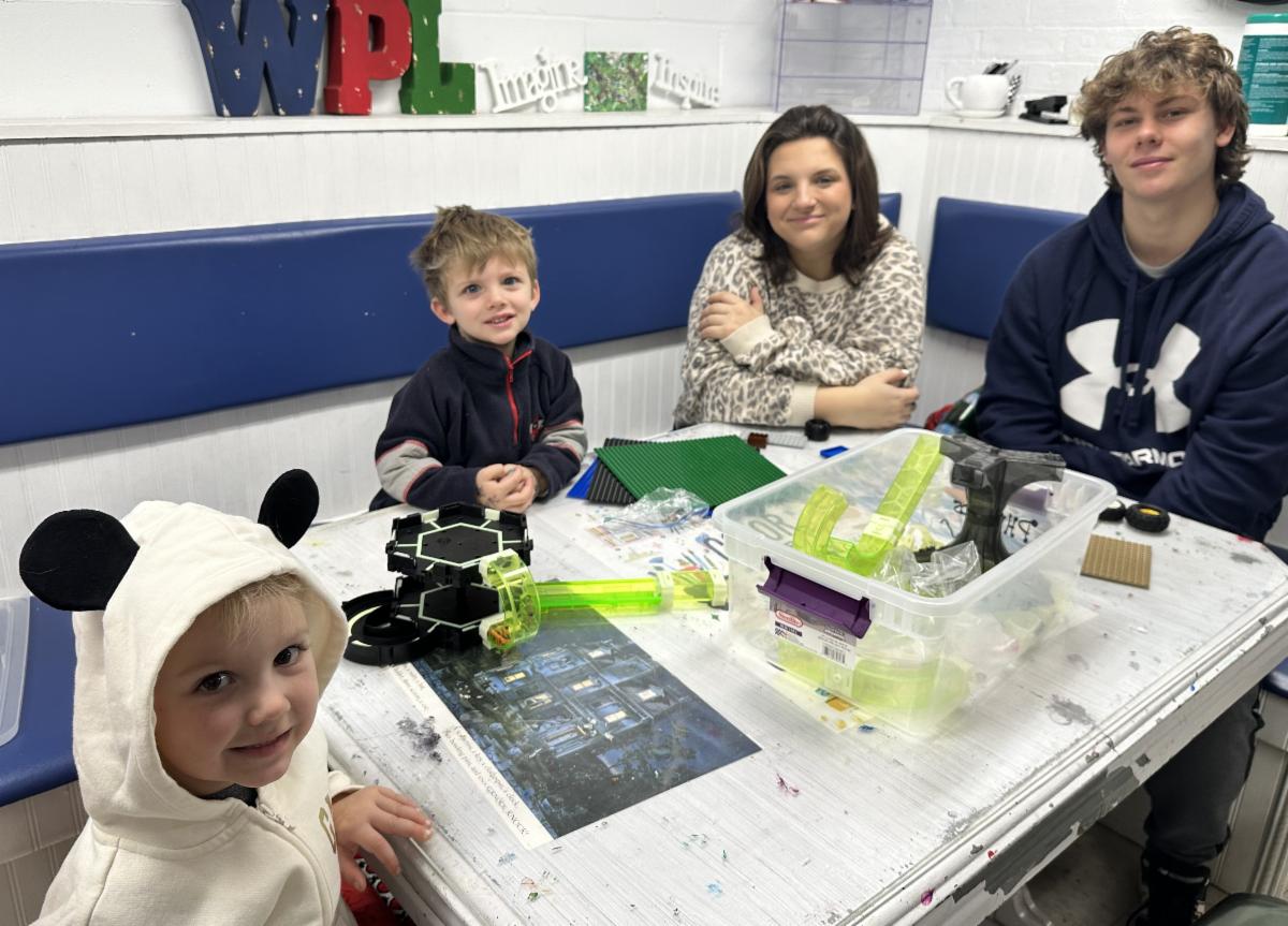Kids (and even some of the adults) enjoyed building with many different materials on Saturday, January 24. By the end of the program, the participants were having car races using WPL's cool racing ramp, designing tracks for motorized bugs, and building marble runs.