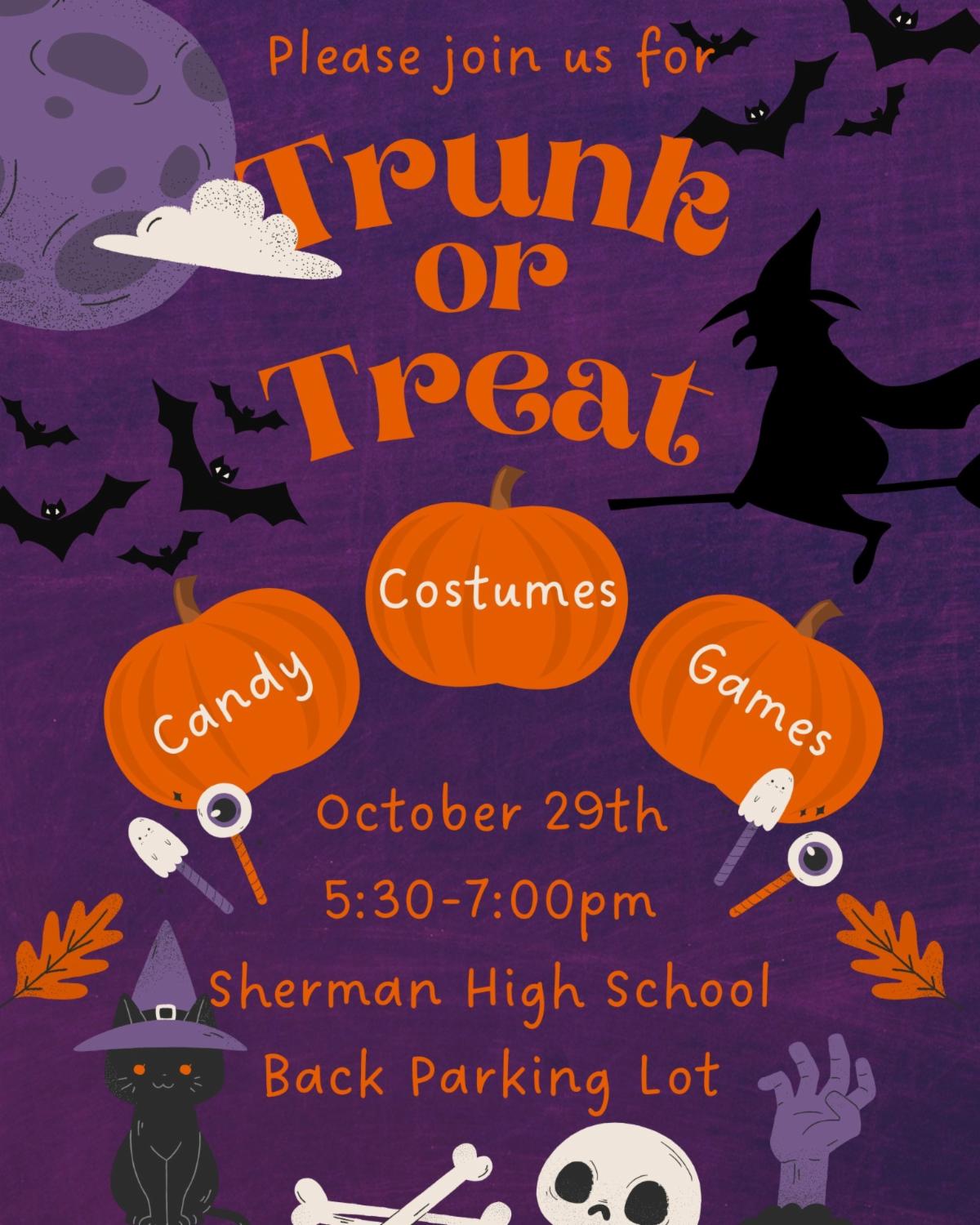 10/29 - SHS Trunk-or-Treat @ SHS Back Parking Lot (5:30-7 p.m.)