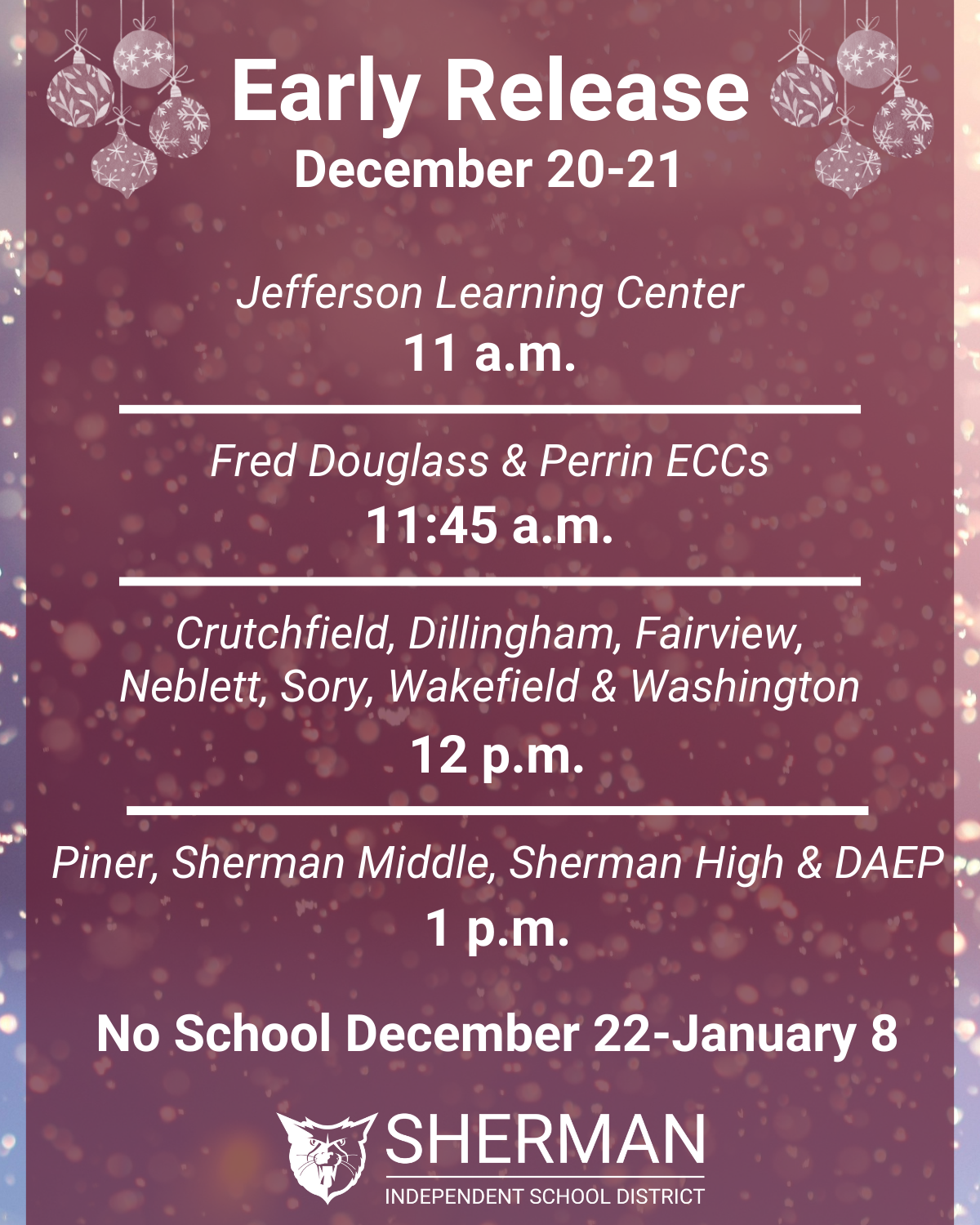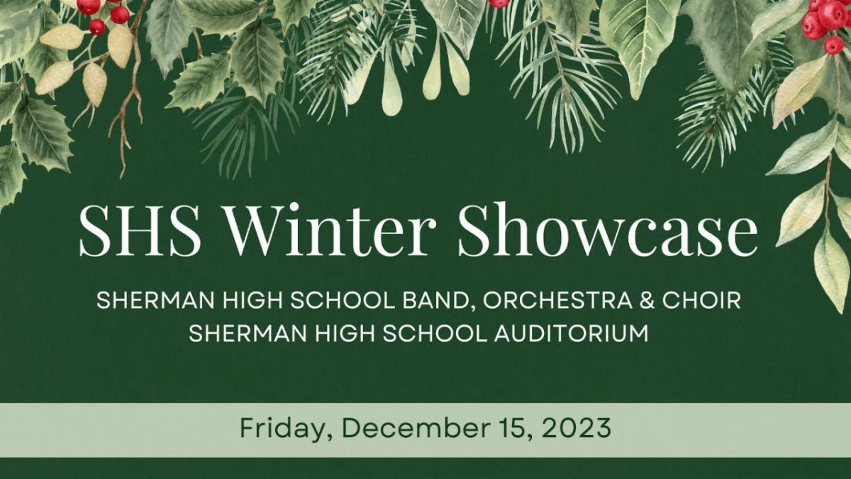 Band, choir, orchestra and arts students are working together to host the Sherman High School Winter Showcase tomorrow night beginning at 5 p.m.! Enjoy an art show by our talented SHS artists before listening to performances from all of our music programs. The event will also be livestreamed on the SHS Video Productions YouTube channel.