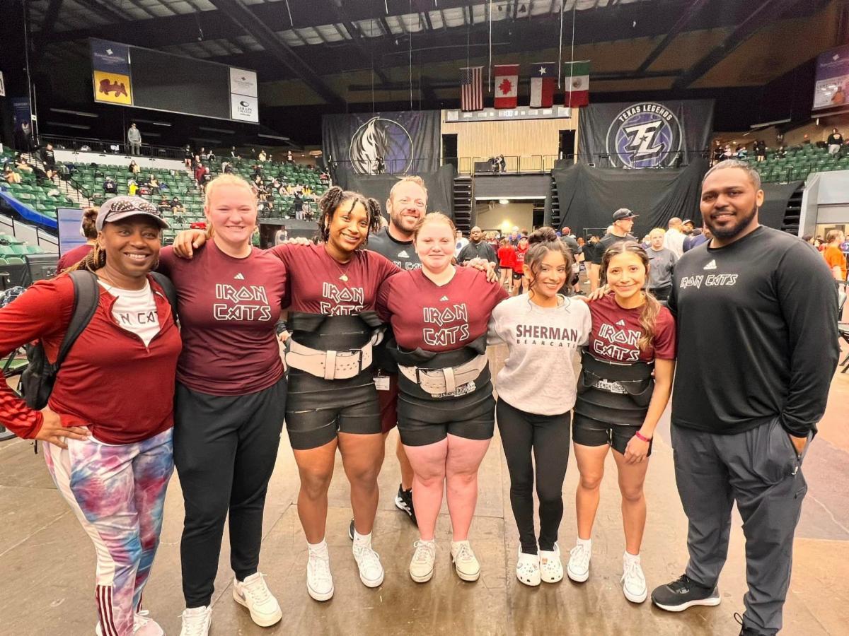Girls Powerlifting represented Sherman well at the THSWPA State Championship in Frisco on March 16! Jada Washington took bronze in her weight class, and Libby Cernero held the state bench press record of 295 lbs for a few minutes.