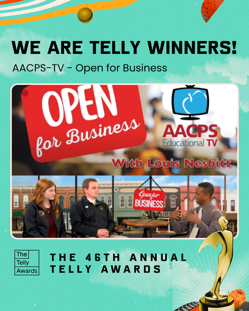 Congratulations to AACPS for their award-winning series, Open for Business hosted by Louis Nesbitt. The series brings stories of student entrepreneurship, community engagement, and career exploration to life.