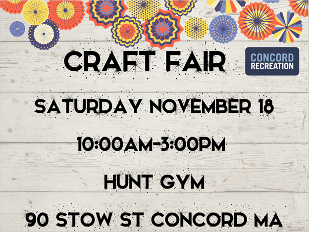 November 18th - Saturday: Craft Fair 8am - 3pm - Hunt Gym