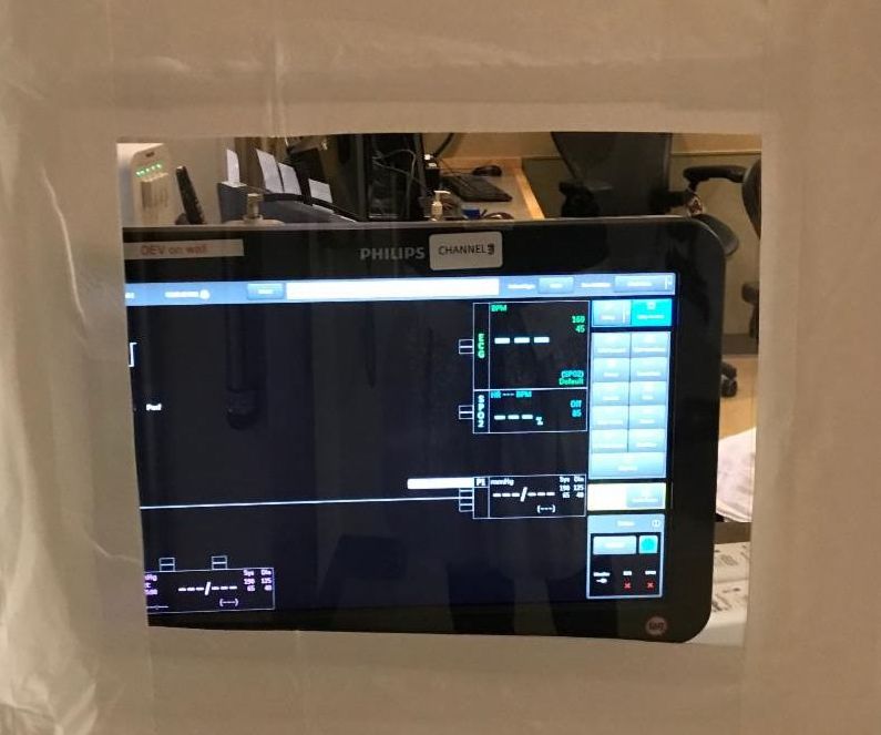 for building a containment area around an MRI scanner to better protect our technologists and nurses around COVID-19 precautions. This created a “clean and dirty” space to decrease crossover of staff, decrease use of PPE, and the window monitor was a special addition which allowed the nurse to continue monitoring without worry. This was originally brought to operation by Rose Wach in CT, and we followed suit, thank you Rose!