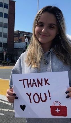 Rose Wach’s niece Karly Amaral, that she hasn’t seen in a month, wanted to show Rose how much she appreciated essential staff! She insisted to take this picture in front of a hospital in New Bedford to make sure the staff coming in and out of work could see the sign she made for them and especially her favorite Aunt Rose.