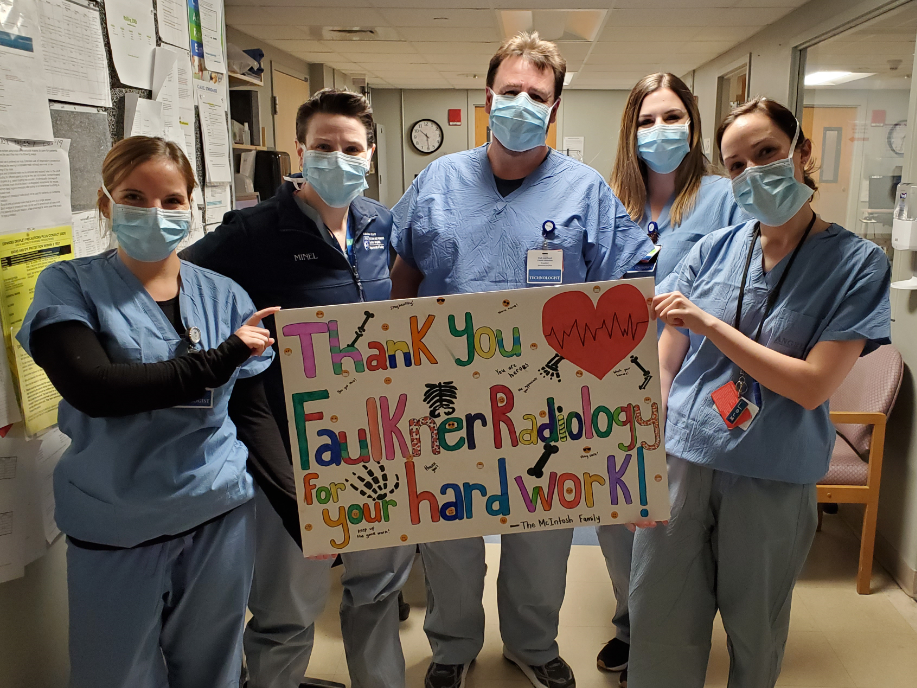 , Director of Radiology at Brigham and Women's Faulkner Hospital shared a poster his family created to thank staff for their hard work and dedication.