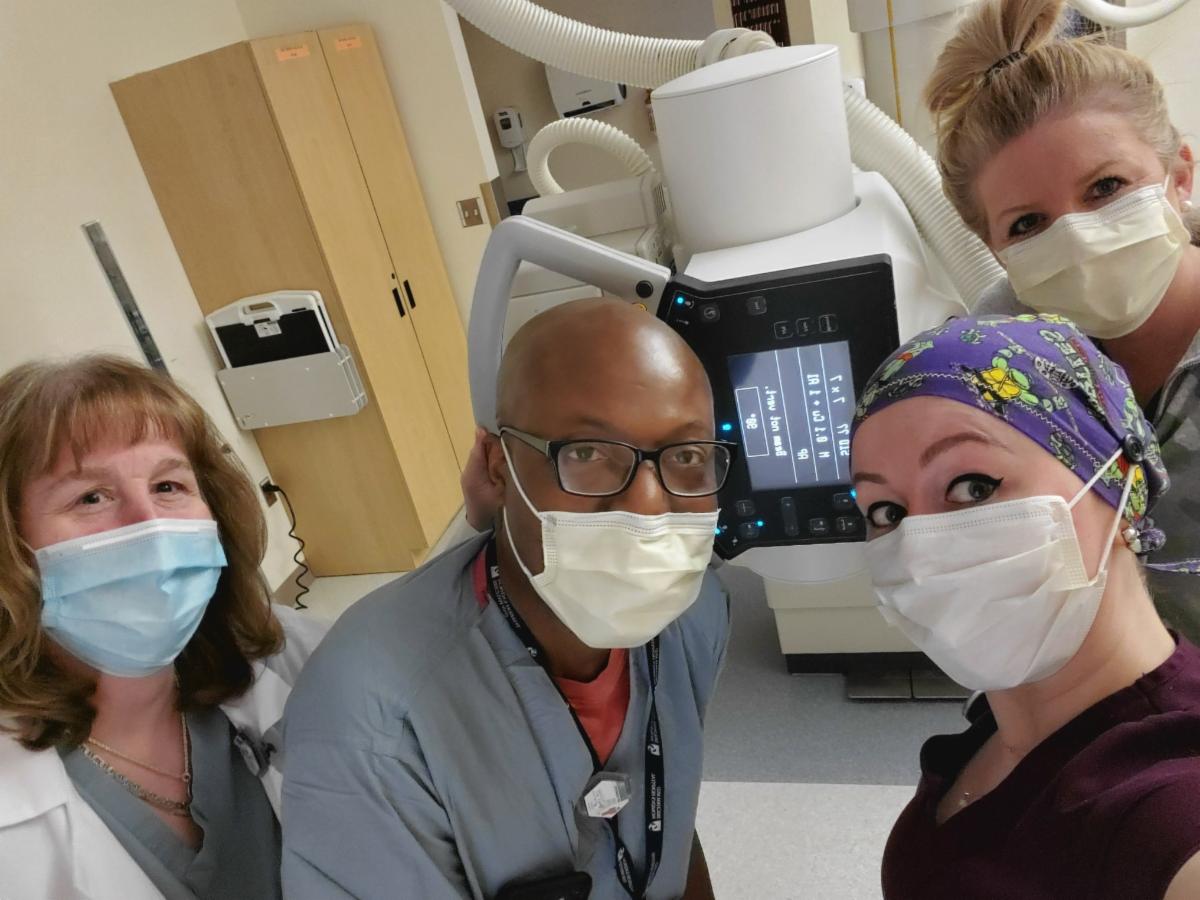 Janet cares deeply for her patients and co-workers. For years, she has decked out the IR department with her colorful surgical caps. During the COVID crisis, she spent her own time and money to make masks for everyone.