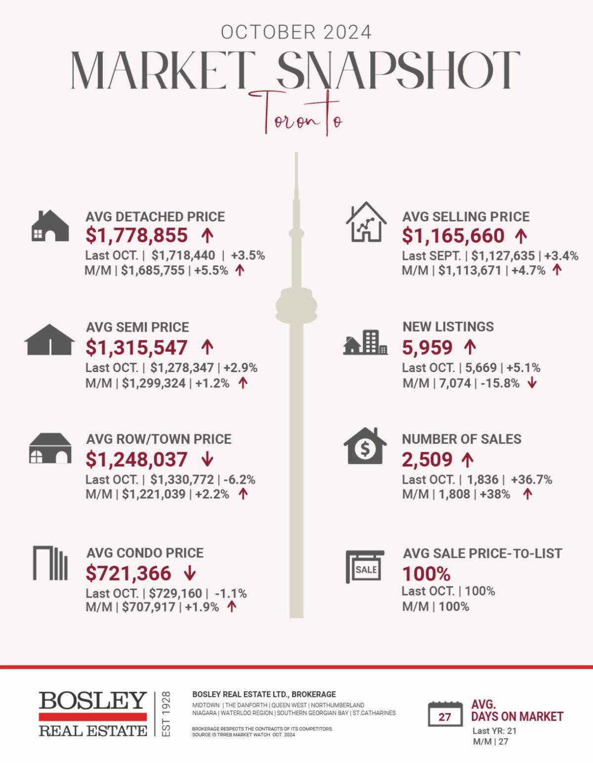 On October 23rd, the Bank of Canada made another move in the right direction, lowering the key interest rate by a full 50 points. This will be felt immediately by people with variable mortgages, but I don't think it will have a noticeable effect on the fall market, though combined with another predicted rate drop in December, could add some fuel to the spring market. Interestingly, sales in October were up by 36% compared to last year. You'll find full market stats at the bottom of this email.