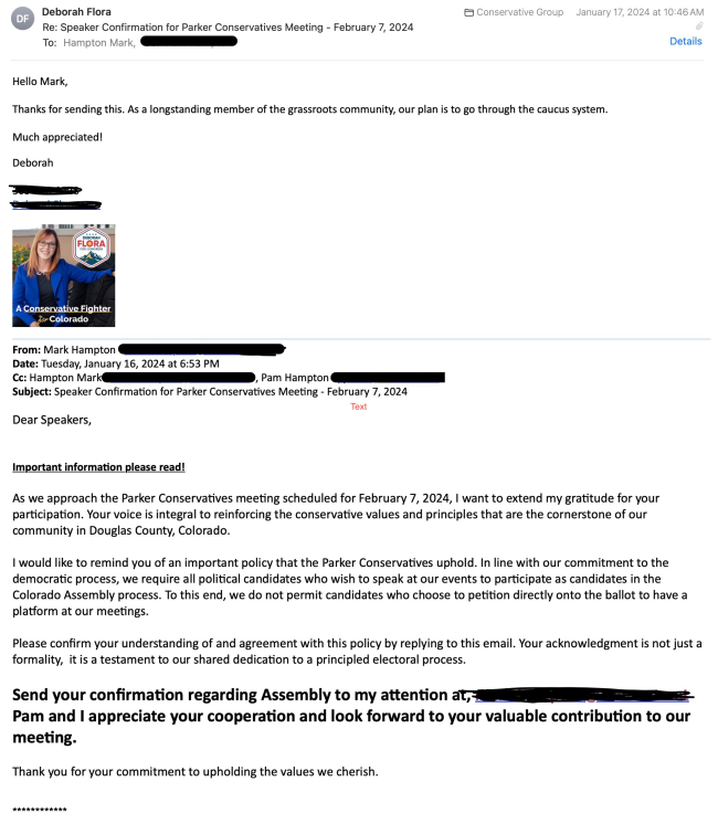 Ponder this, “Do you find it strange that 3 of our Doug Co HR held a joint town hall meeting in Castle Rock”? Why did they not each hold a meeting in their own District? Not holding a town hall in your district is disrespectful to us, the voters.