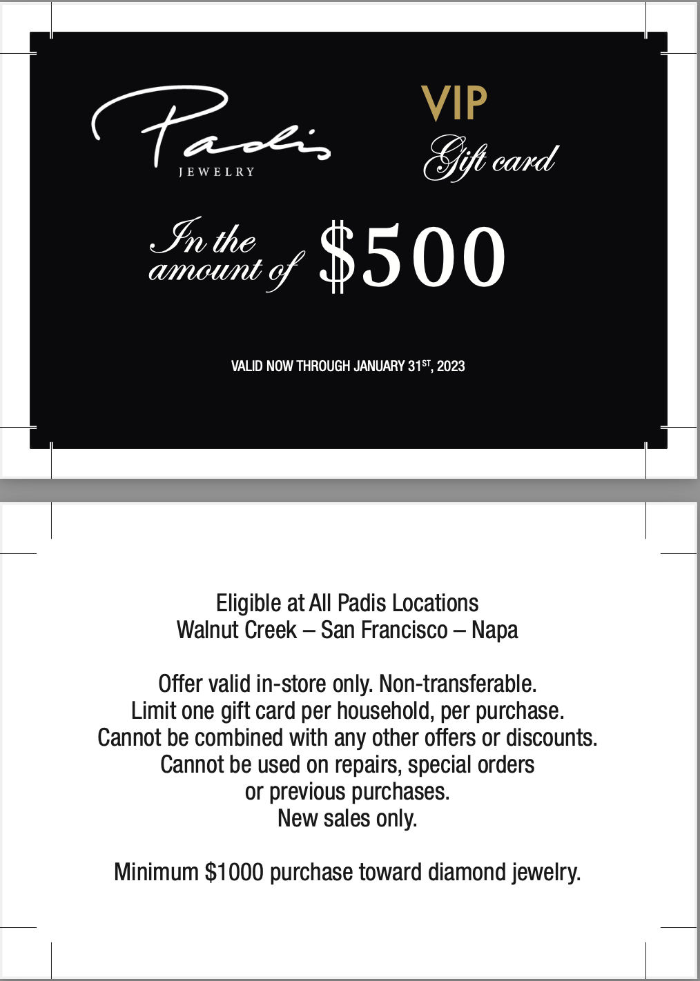 For example: You can send your big customers a $500 gift card with no minimum purchase