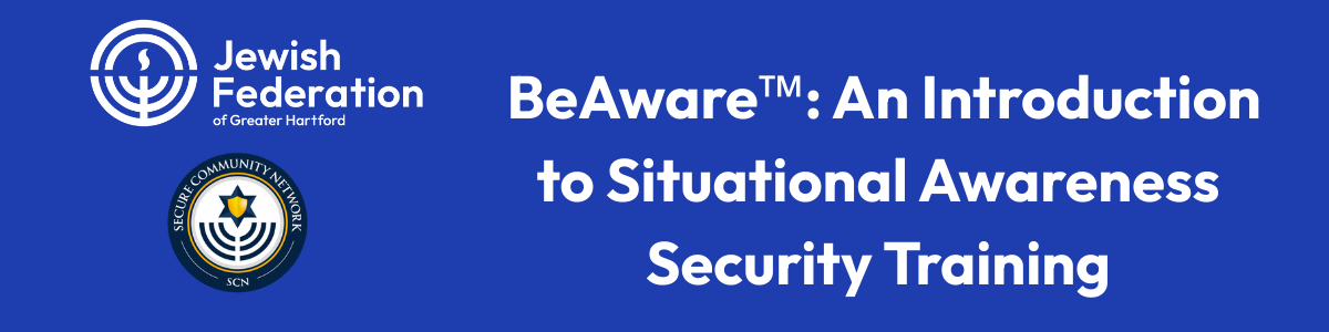 Being able to spot danger is the first step in keeping yourself and your loved ones safe. Join a free course that will give you the skills to recognize threats—and respond with confidence. This essential in-person security training is designed for every member of the Jewish community, with no prior security experience required. Federation’s Regional Security Advisor will guide you through BeAware™, an Introduction to Situational Awareness, where you’ll learn to: