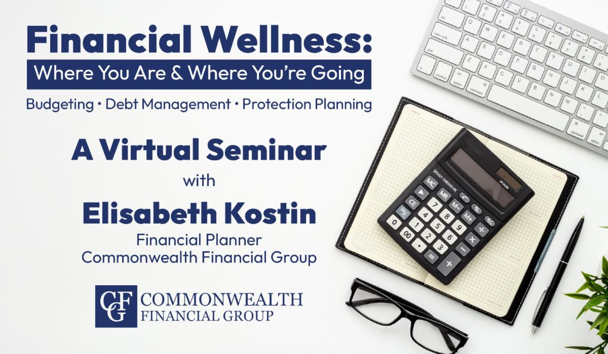 Please join Elisabeth Kostin, Financial Planner at Commonwealth Financial Group, for an interactive virtual seminar focused on strengthening your financial wellness and literacy. This session will break down key topics like budgeting, debt reduction, and protection planning—helping you better understand where you are financially and how to move forward with clarity.