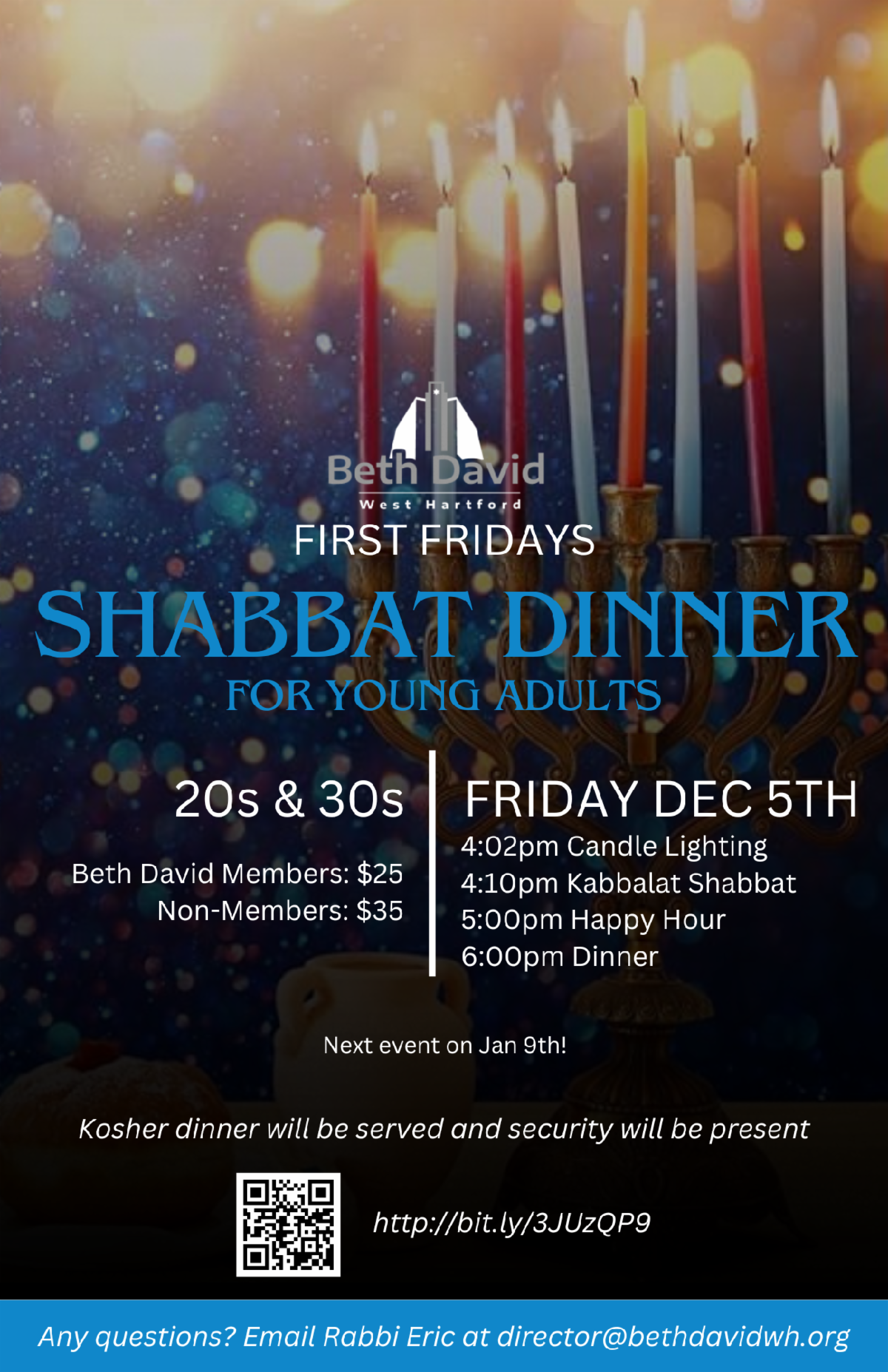 Halachic Highlights The lighting of the first candle will be Sunday night, December 14, anytime after 4:30pm. On Friday night, December 19, the Chanukah candles are lit before the lighting of Shabbat candles. On Saturday night, Chanukah candles are kindled after Havdallah.