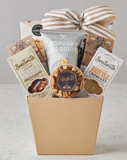 Imagine receiving a basket of delicious treats and not having to read a single ingredient list! This bundle of deserts includes certified gluten-free ruffles, peanut brittle, chips, butterscoth and more from brands such as Brockmann's Chocolates, Crackle & Pop and Cookie It Up. Ships across Canada and the US.