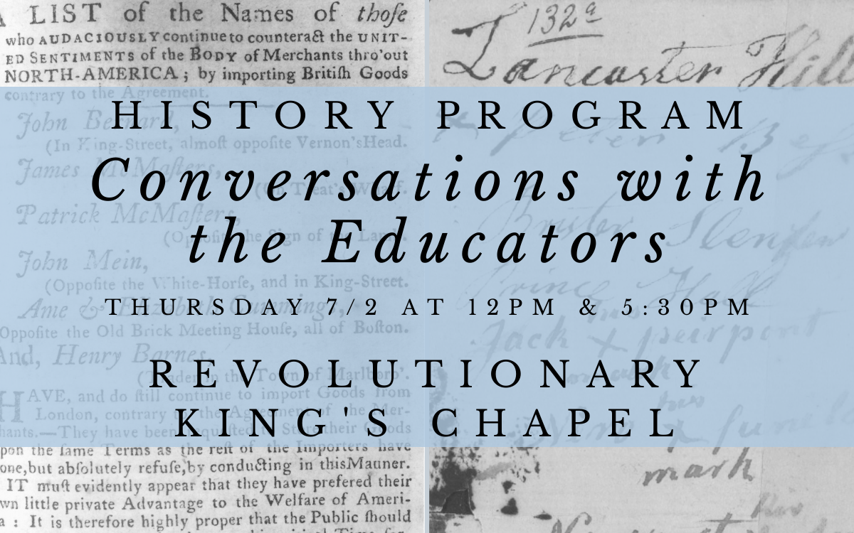 Click HERE for resources compiled by Minister for Education and Membership David Waters, Community Action Committee Chair Amanda Pickett, and the King's Chapel History Program. We encourage you to do what you are able to combat racism and police brutality, whether it's physically attending a rally, contributing financially to the cause, or educating yourself on our communal history of injustices. We encourage you to check our page regularly, as we will continue to make updates.