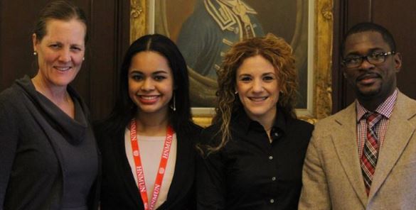 In February, FXB fellows Vasileia Digidiki, Kathleen Hamill, and Roger-Claude Liwanga (with HMUN's Ashley Collins in photo) participated in a panel discussion, "The Challenges of Protecting Children's Rights" during the 63rd session of the Harvard National Model United Nations 2017 (HMUN). The three fellows reflected on child protection challenges in Europe, the Middle East and Africa while engaging with faculty advisors and professors who convened for the HMUN with their students from 275 universities around the country and the world.