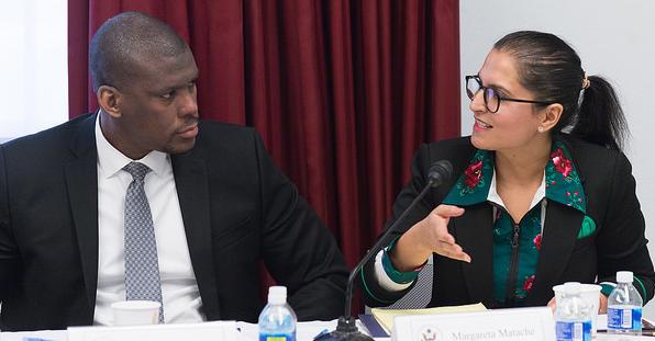 Matache in conversation with Derek Hogan of the US State Dept., photo courtesy of the US Helsinki Commission |