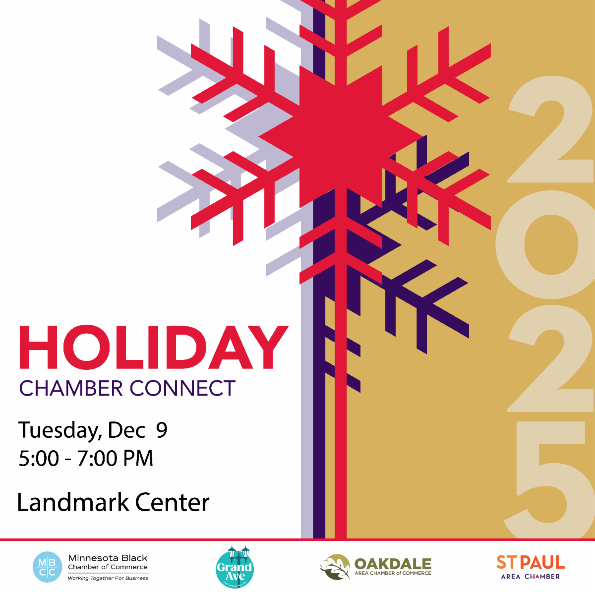 The St. Paul Area Chamber, along with our partner chambers, annually hosts a wintertime celebration for Chamber members, friends and colleagues. We'll have free food and drink samples from local restaurants, caterers, breweries and more, as well as a cash bar. Join us!