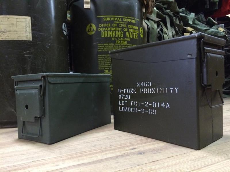 These cans are a rare find- the same size as the ever popular 50cal can, but a full 10" tall! As you can see from the picture that extra height makes it a great size- you can fit more tools or longer wrenches inside, hold more ammo and hold taller boxes of ammo without unpacking, or anything else. These cans are also all 1960's and 1970's era cans fresh from government storage, so they have the heavier duty early style construction- you can see how the lid on the tall can in the picture comes down a lot further over the can, this makes the can a lot stronger and less likely to dent or bend if dropped.