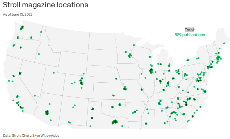 - Stroll operates nearly 600 hyper-local magazines across 48 states.