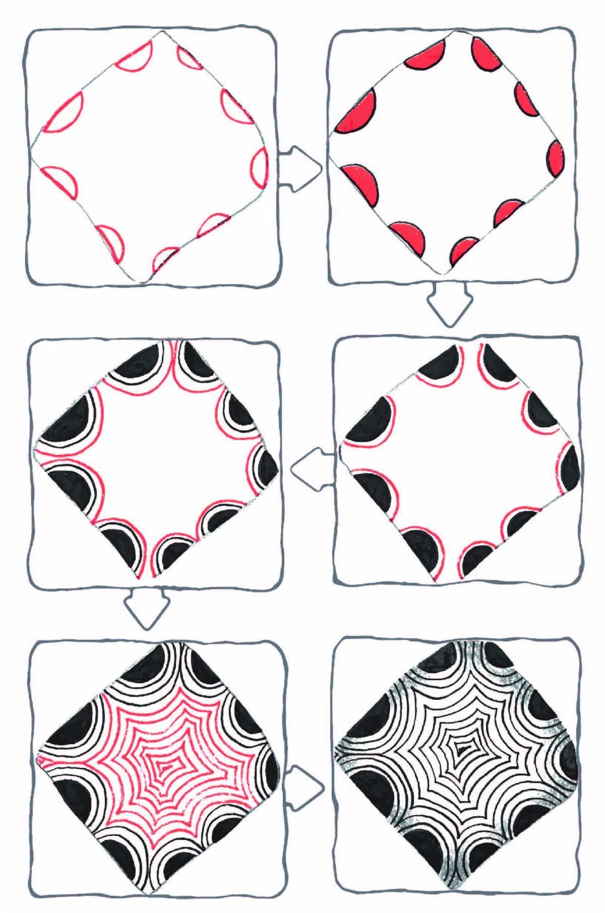 Bijou suggested, in honor of the Bijouism, Comfort, we should begin our series with the classic tangle called crescent moon. It is very often the first tangle people learn and a comfort to us and many others as well.