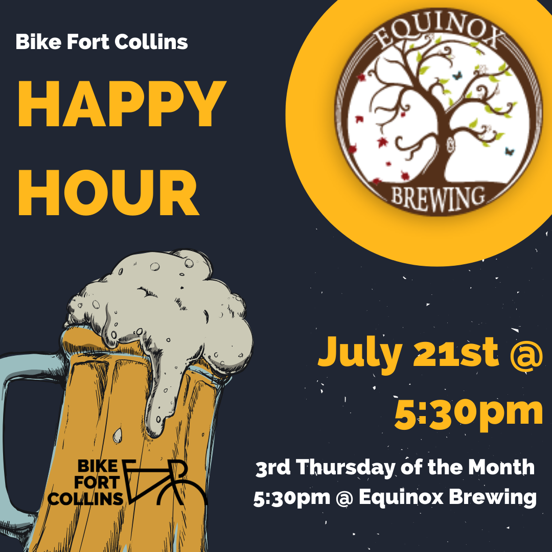 Join us for Bike Fort Collins' Happy Hour every 3rd Thursday, 5:30pm at Equinox Brewing! We can talk about bikes or not talk about bikes, either way it's always a jovial crowd of bike loving folks. READ MORE