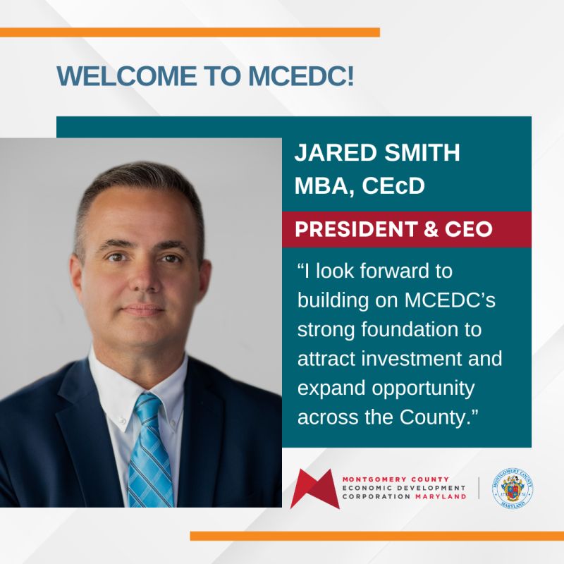 Rockville, Md. – The Montgomery County Economic Development Corporation (MCEDC) today announced Jared Smith as its new President and Chief Executive Officer, effective December 8, 2025.