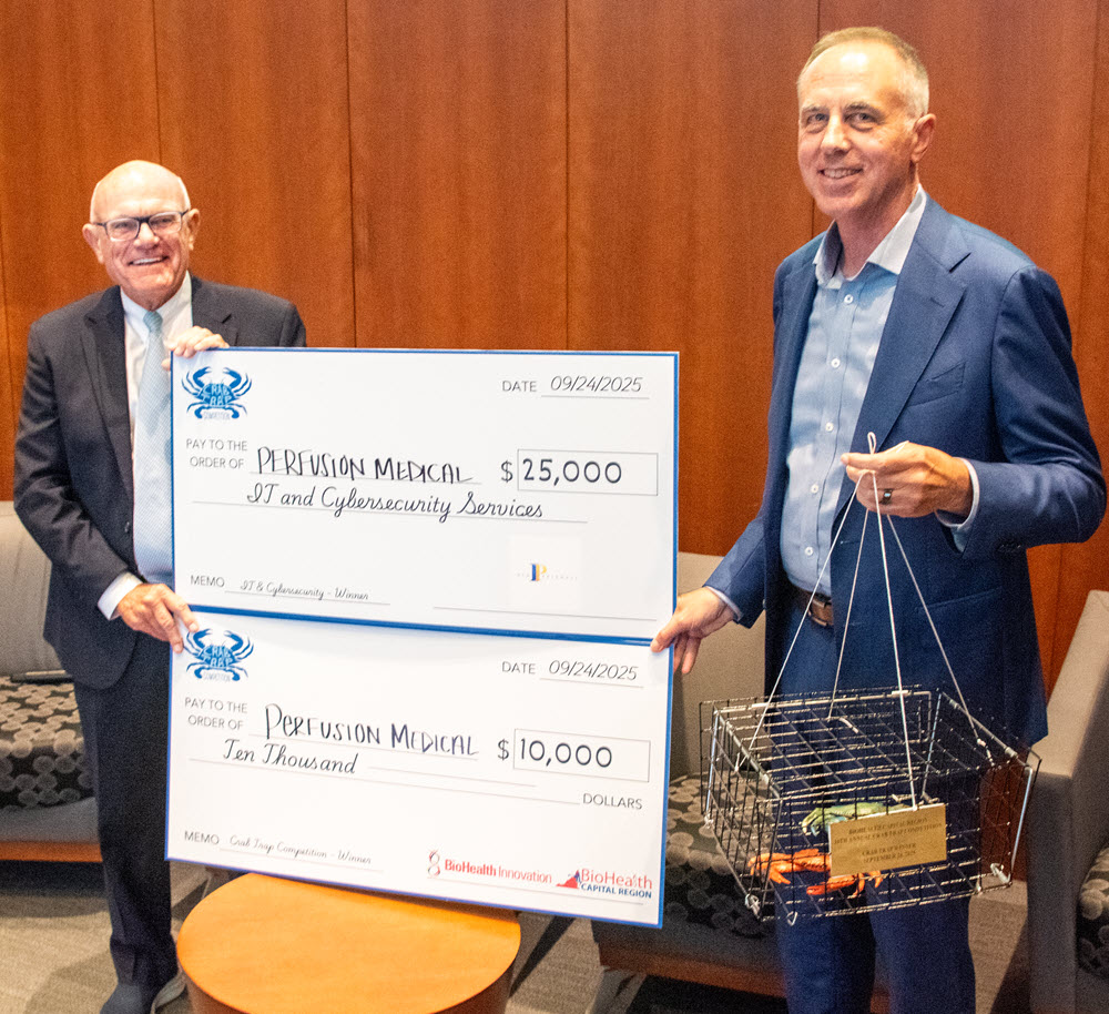 | | Where Human and Artificial Intelligence Converge: A Recap of the 2025 BioHealth Capital Region Forum | The 11th Annual BioHealth Capital Region (BHCR) Week, held from September 23 to 25 at the US Pharmacopeia (USP) in Rockville, MD, brought together over 750 attendees, showcasing the strength, resilience, and innovation of the region’s biohealth ecosystem. The Forum, coupled with the 8th Annual BHCR Investment Conference and the 10th Annual Crab Trap Competition, made BHCR Week 2025 once again highlight the leadership of Maryland, Virginia, and Washington, D.C. in advancing life sciences. | | Perfusion Medical Wins 2025 Crab Trap Competition | |