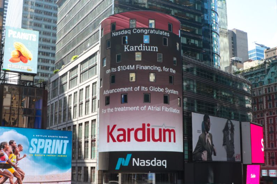 Kardium debuted in Times Square on the Nasdaq billboard with a mention of its latest $104 million financing.