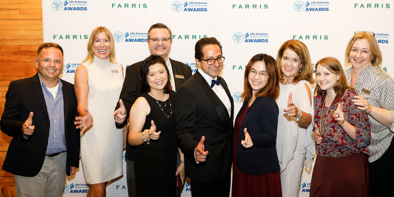 A special thank you goes out to our invaluable event sponsors. Presenting sponsor Farris, Awards sponsors and supporters, AbCellera, Acuitas Therapeutics, AstraZeneca, Evonik, Genome BC, Johnson & Johnson, KPMG, St. Paul’s Foundation, and Providence Research and Technology Sponsors, BFL Canada, Chinook Therapeutics and STEMCELL Technologies.