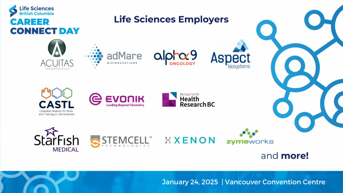 Looking for opportunities and employment within the life sciences sector? LSBC is bringing our Career Connect Day to the Vancouver Convention Centre on January 24, 2025. The day will include a morning of inspirational stories and one of the largest life sciences career expos in the afternoon. You won’t want to miss out on an opportunity to get noticed by employers and network in the field. Register today. | |