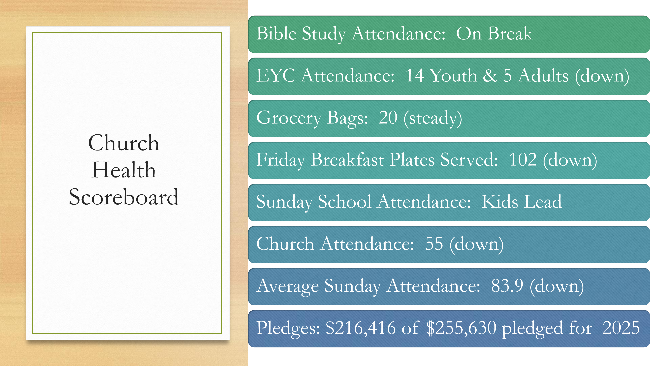 If you added someone to the "Prayers of the People" during our worship service please follow up with a phone call to the office and we will add them to next Sunday's prayer list. Also, let us know how the person you requested prayer for is doing.