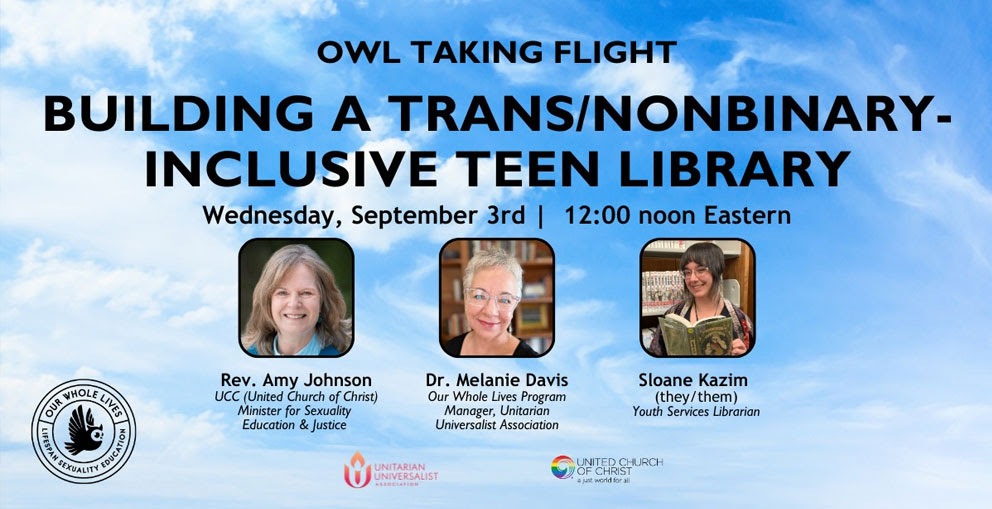 Join this next OWL Taking Flight webinar to learn more about how to make sure your library at home, church, in your community is inclusive of trans/nonbinary representation.