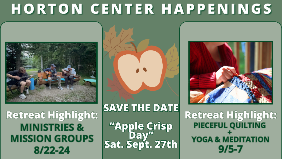 You are welcome to come on your own, bring a friend, or bring your family! Come enjoy the foliage from a rocking chair on Madison Porch or take a hike up to one of the ledges and take in the view from up there. Bring everything you need for a picnic lunch, a book, a craft, your hiking boots, a musical instrument, or whatever else you need to make your day enjoyable. Horton Center will provide restrooms, coffee/tea/water, and delicious homemade apple crisp, of course!