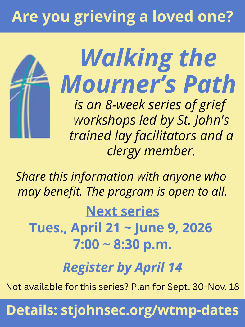 It is time to consider a memorial donation that will help us decorate our worship spaces for Easter. Give in remembrance or in honor of someone special. For a $50 donation, we will remember your loved one with a listing in the Easter bulletins. Following our Sun., April 12th services, the flowers will be delivered to our sick and homebound parishioners, keeping the sunshine going. Please complete this form by noon on Fri., March 20th, to have your donation and your loved one listed. Payment options are listed at the bottom of the form. You may also donate using an Easter flowers donation envelope found in the pews in the Historic Church and at the Welcome Center adjacent to All Saints Hall. Thank you! If you have questions, please contact Nancy Murphy at nmurphy@stjohnsec.org.