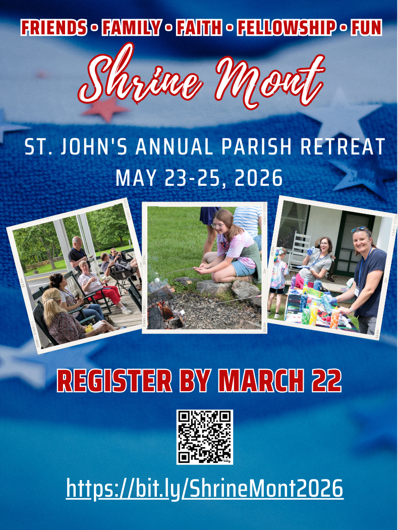 | | St. John's annual parish retreat at Shrine Mont — nestled among the trees at the foot of Great North Mountain in the Shenandoah Valley in Orkney Springs, Virginia — is a special experience. Anyone who has gone will tell you that. The activities make it fun. The location makes it relaxing. But the people are what make the weekend truly memorable. Our young people thrive in a safe environment that allows them to stretch their wings a little. Adults enjoy a rare opportunity to spend unhurried time in conversation, in play, or in peaceful stillness. If you’ve never experienced Shrine Mont, talk to someone who has enjoyed this beloved St. John’s tradition. Register here by March 22nd. If you would like to attend and are in need of a scholarship, please contact the office or the Shrine Mont Committee at ShrineMont@stjohnsec.org. | | In the Community & For the Community | | |