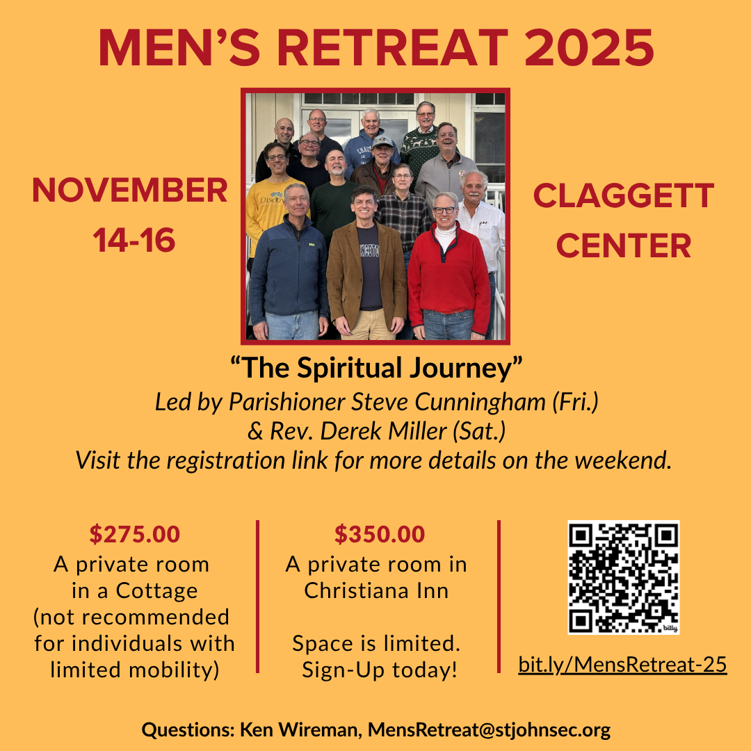 Drop your donations in the boxes in the Historic Church Narthex or near the fireplace in the Education Building, Nov. 2-23. Questions should be directed to Elaine Trogdon at Outreach@stjohnsec.org. (Put “Coat Drive” in the subject.)