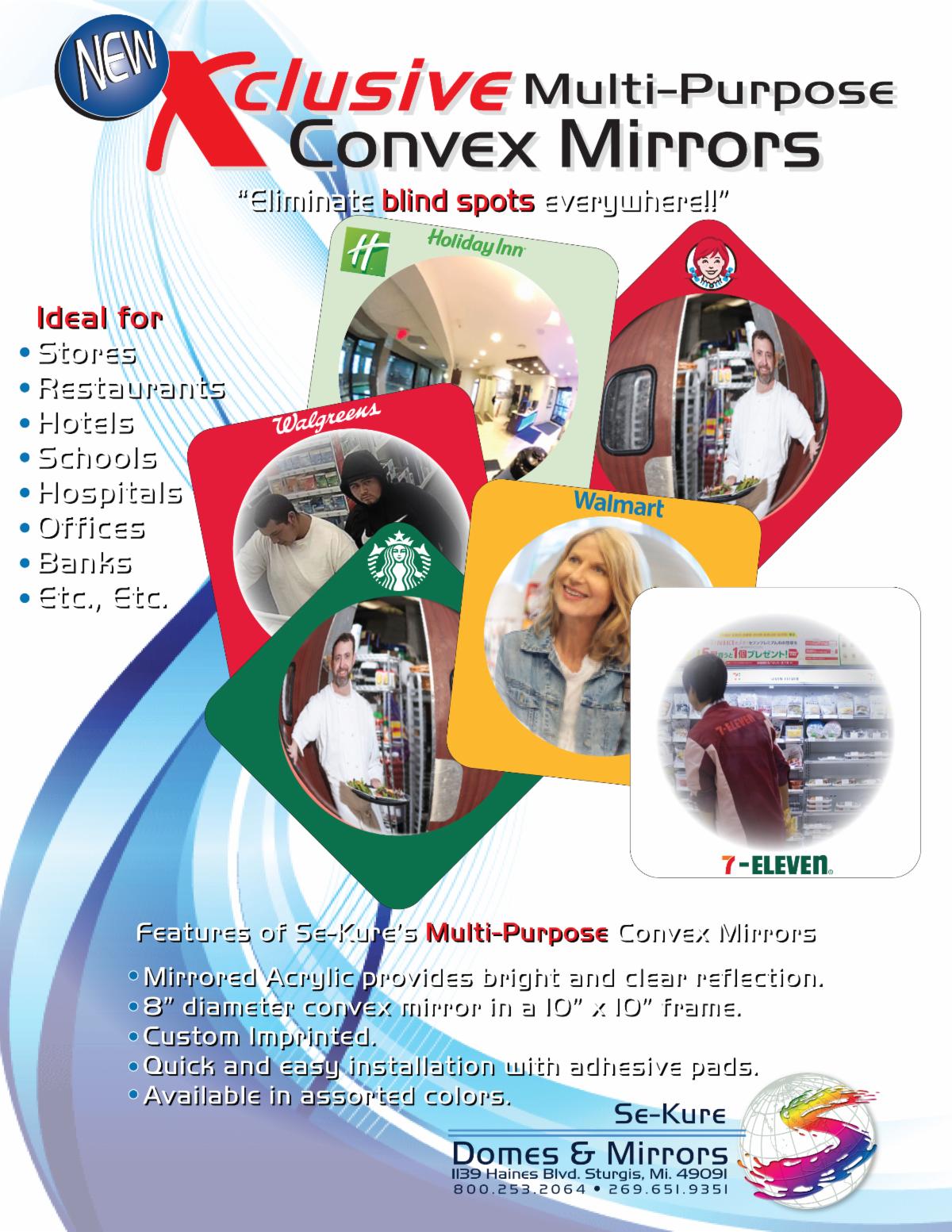 Se-Kure's collective manufacturing capabilities, which include forming acrylic, digital printing, mirroring and laser cutting, allow us to produce BLIND SPOT logo mirrors that help make concealed areas visible while appearing to be decorative wall accessories.