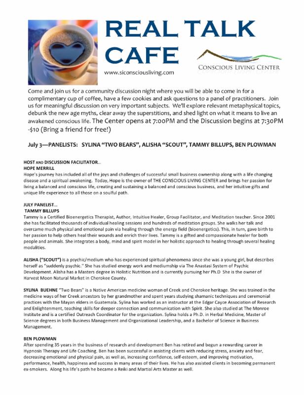 HOST AND DISCUSSION FACILITATOR... HOPE MERRILL Hope's journey has included all of the joys and challenges of successful small business ownership along with a life changing disease and a spiritual awakening. Today, Hope is the owner of THE CONSCIOUS LIVING CENTER and brings her passion for living a balanced and conscious life, creating and sustaining a balanced and conscious business, and her intuitive gifts and unique life experience to all those on a soulful path.
