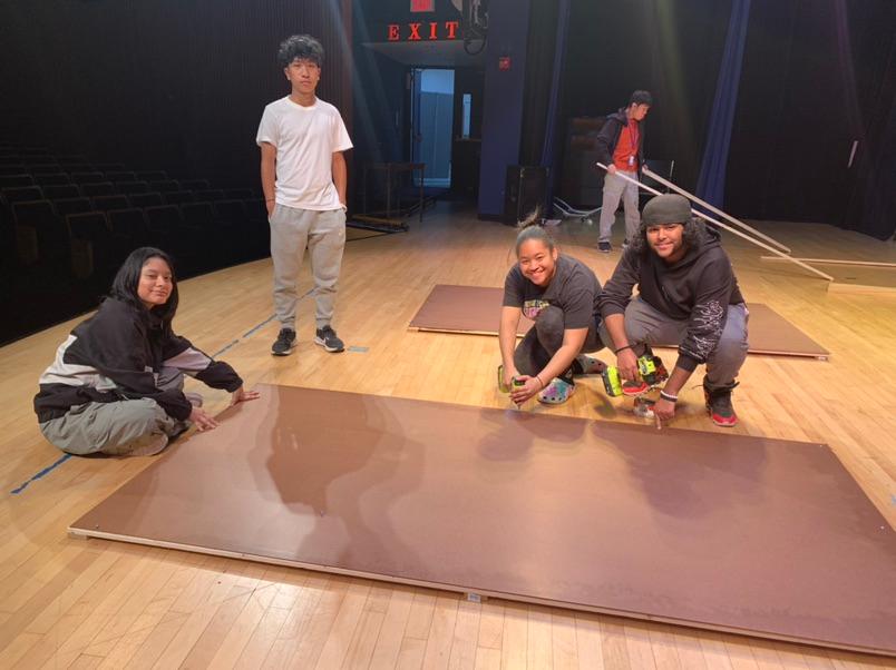 The tech crew has been hard at work building and painting scenery for the production. | |
