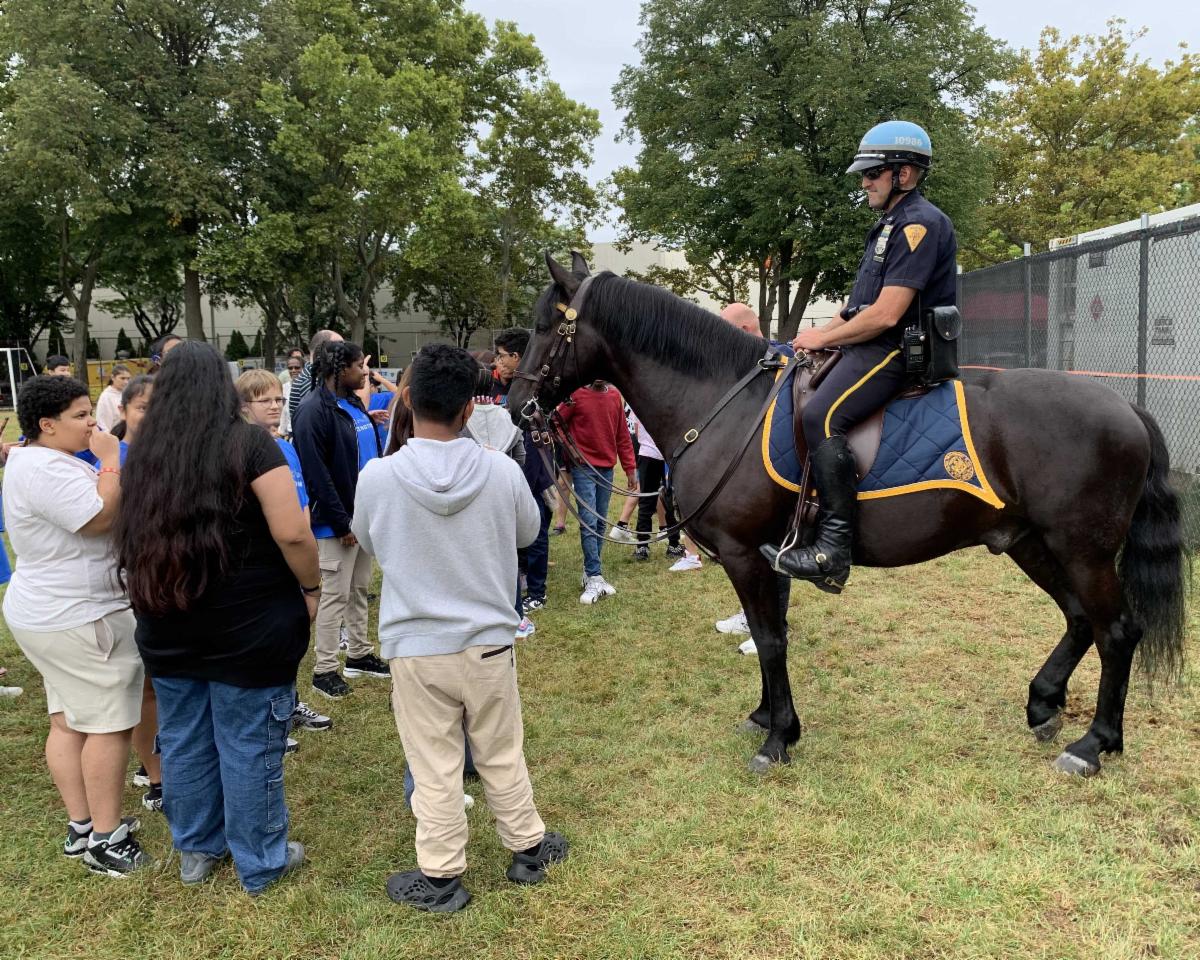 Students were thrilled to see demonstrations from the TARU Unit (drones & digidog), Highway Unit, and Mounted Unit. The NYPD's new Deaf Awareness Vehicle and the NYPD game truck were a big hit with all students!