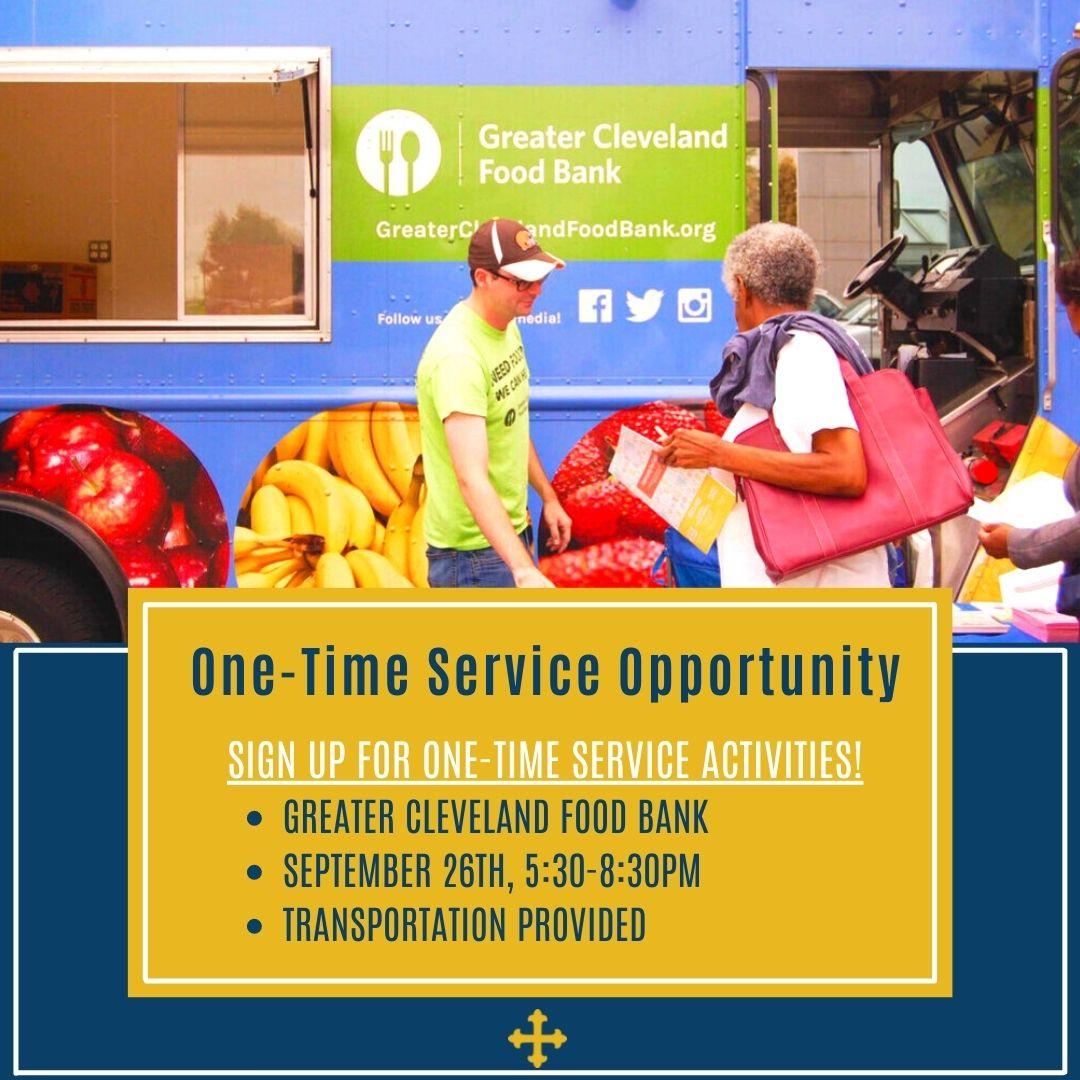 Our first opportunity is at the Greater Cleveland Food Bank, beginning on Monday, September 26 from 5:30-8:30pm.