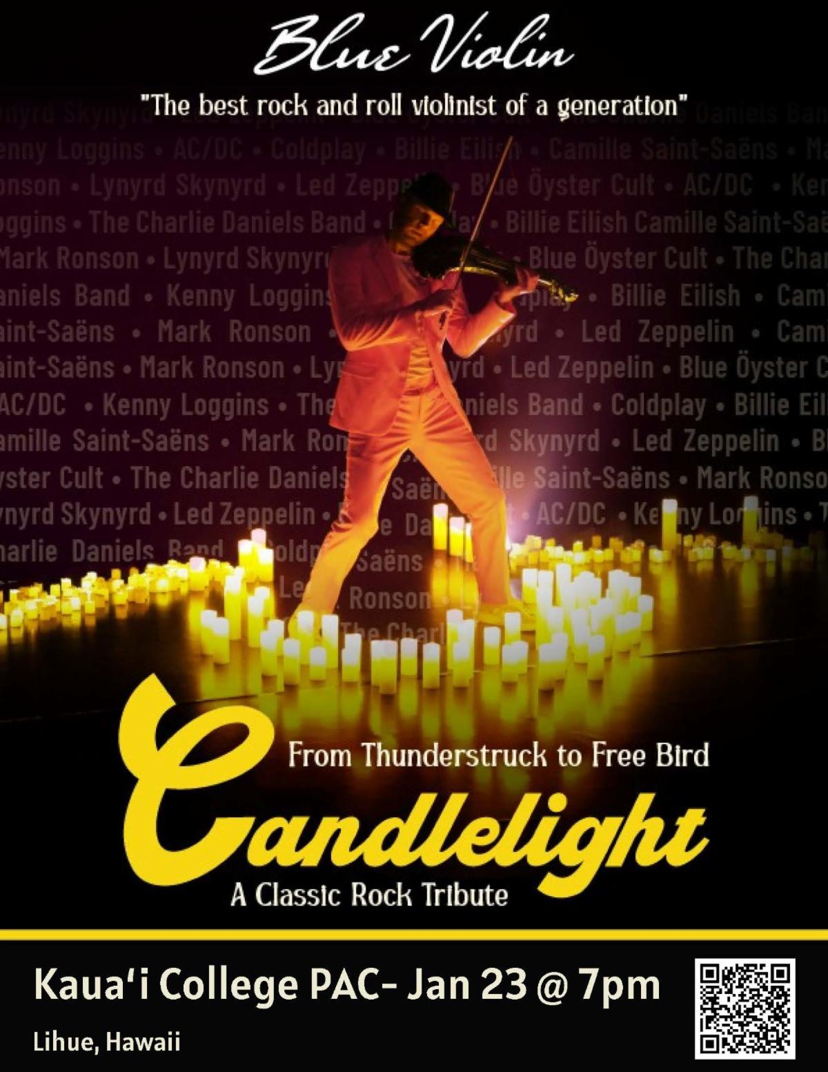In this electrifying solo candlelight concert, Blue Violin transforms classic rock into cinematic soundscapes using live looping, searing violin solos, and explosive arrangements. The result: a visceral, immersive performance that shatters expectations and stirs the soul.