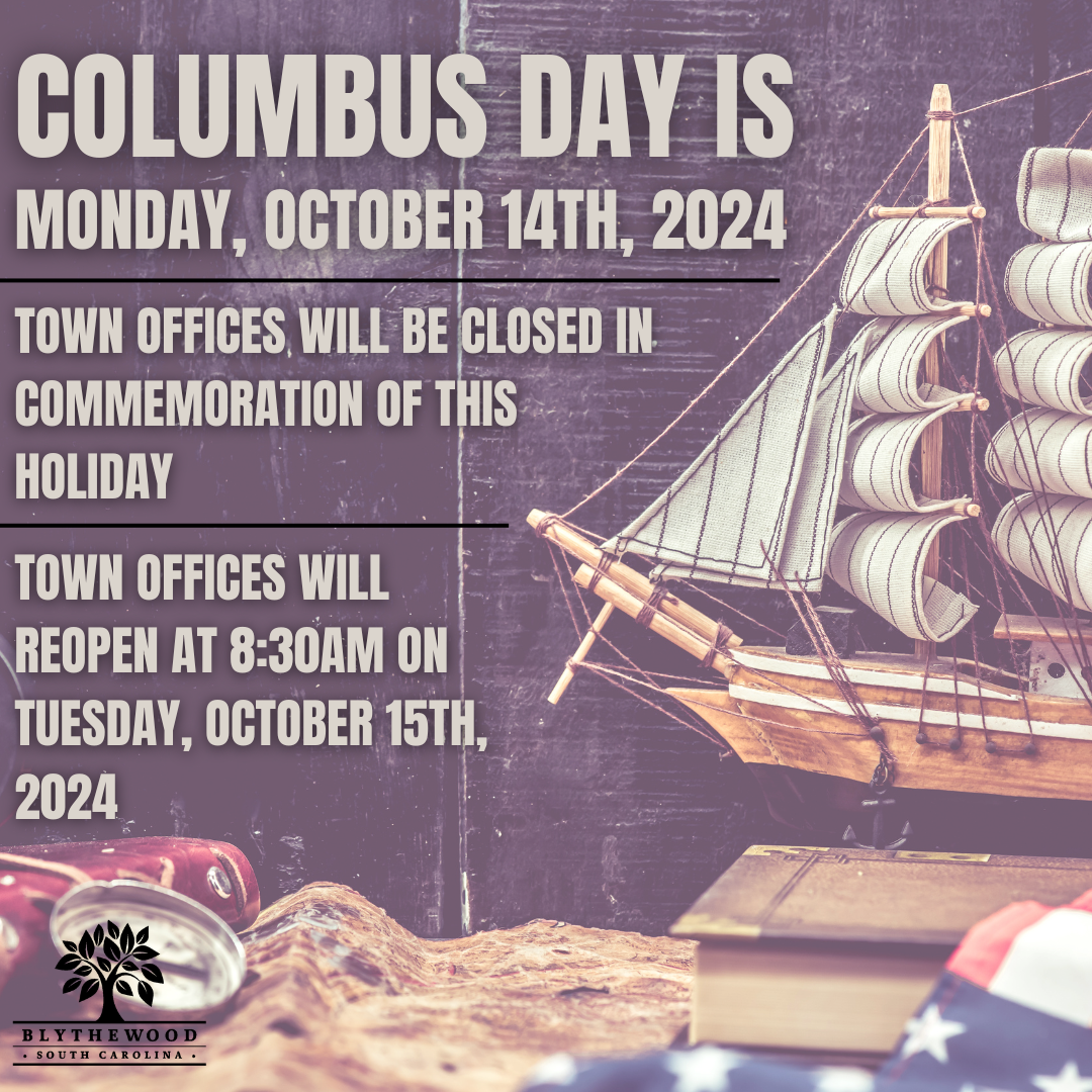 In commemoration of Columbus Day, Town Offices will be closed on Monday, October 14, 2024. Town Offices will reopen on Tuesday, October 15, 2024 at 8:30am. Happy Columbus Day!