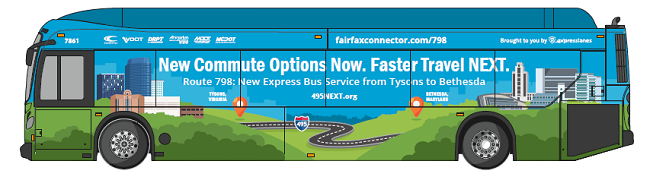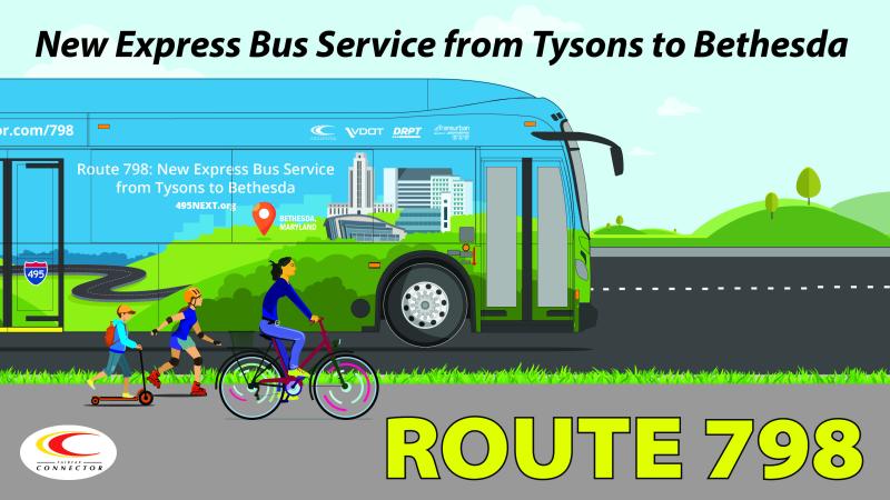Starting September 16, the Fairfax Connector will operate a new express bus line between Tysons and Bethesda. This inaugural service will be the only existing direct transit connection between the two localities and will operate weekday rush hour service only, with a total of five stops, funded by a grant from Transurban via the Virginia Department of Rail and Public Transportation (DRPT).
