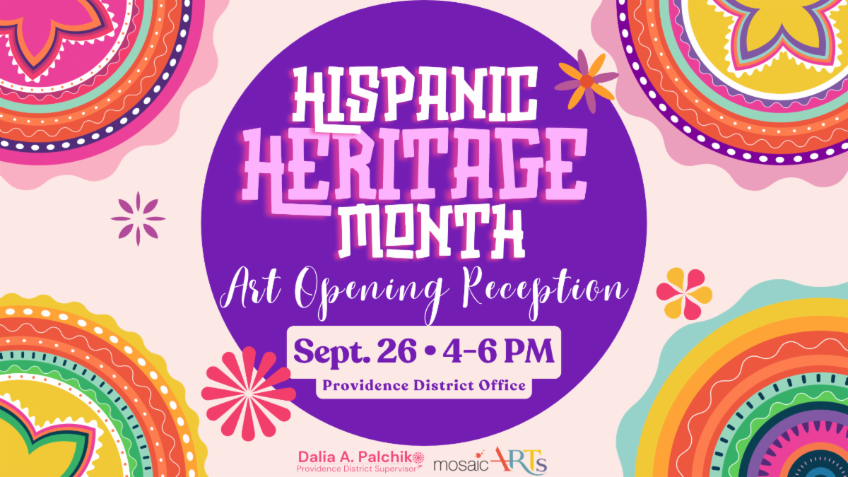 In celebration of Hispanic Heritage Month, my office is partnering with mosaicARTs to invite local Hispanic artists interested in showcasing their 2D or 3D artwork at the Providence District Office (3001 Vaden Drive, Fairfax) on Thursday, September 26th. Artists are encouraged to use traditional and contemporary techniques to create captivating artworks.