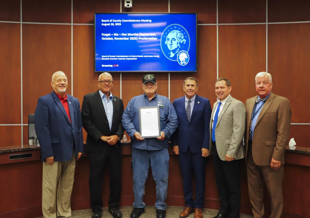 The BOCC presented a proclamation to the Disabled American Veterans Organization, declaring September, October, and November 2025 as “Forget-Me-Not” Months.