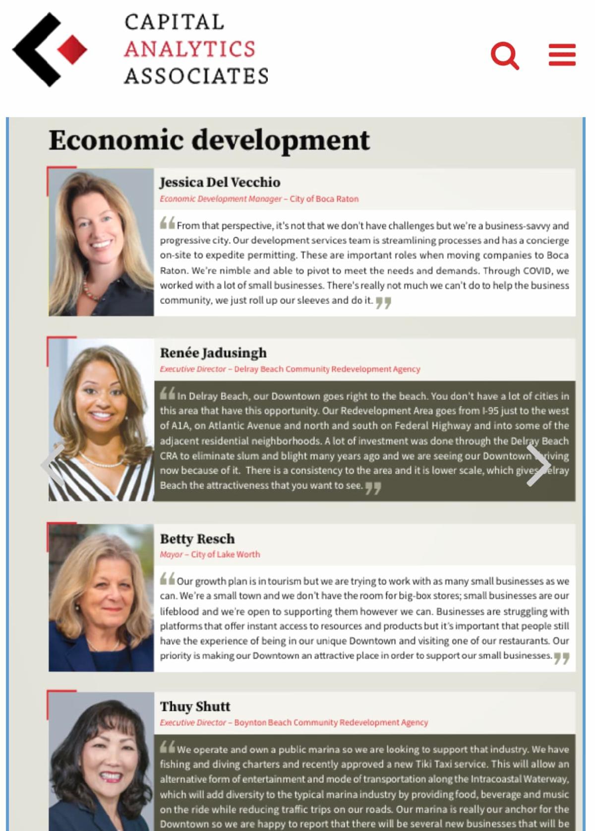 As part of our ongoing marketing initiatives, we continue to create informational pieces designed to highlight the business attributes of the City of Boca Raton.